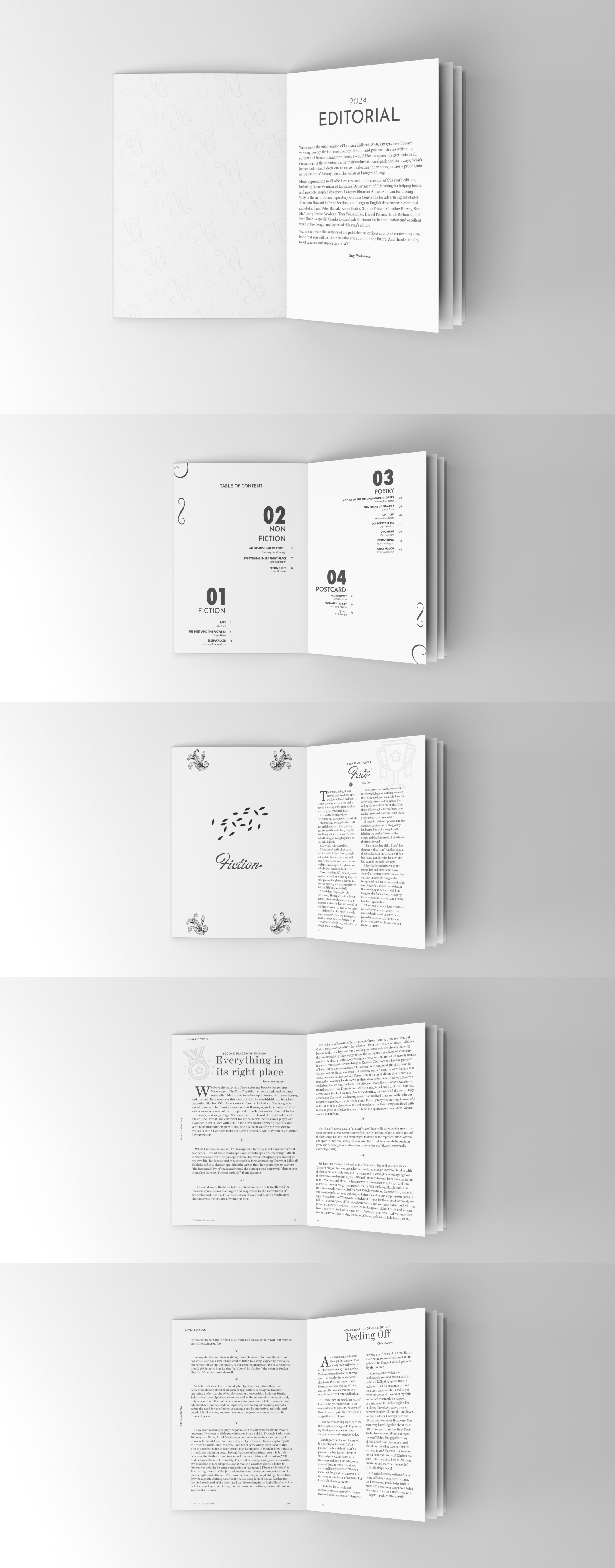 I designed and produced the 2024 issue of W49 Magazine, Langara College’s annual publication showcasing fiction, creative nonfiction, and poetry. Although called a “magazine,” it’s produced in a book format. I handled the full design process from layout and typography to cover design and preparing all materials for print ensuring a cohesive, professional, and reader-friendly publication.